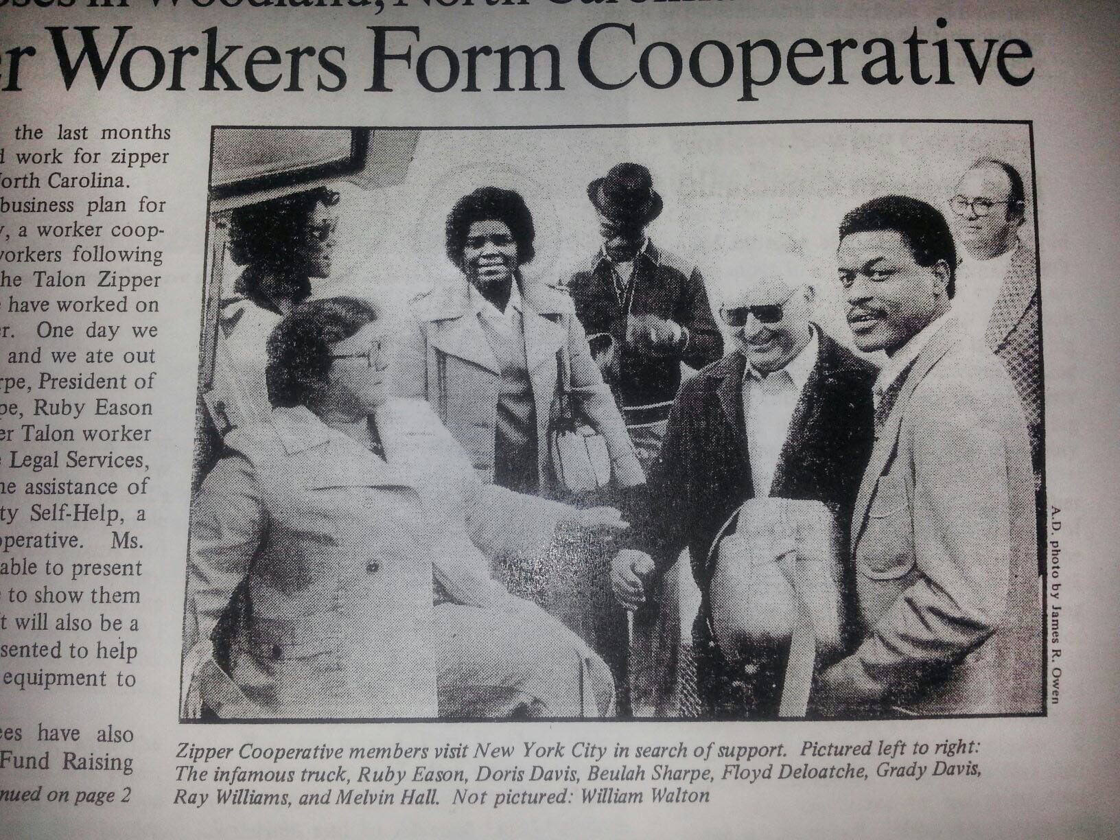 Murfreesboro (NC) 1982. A black woman and a diverse group of workers were recently laid off from the Tylon Zipper plant. The plant had closed its doors for good. They decided to open their own worker-owned plant. Employees invest in their own business. They all share in the decision-making processes.