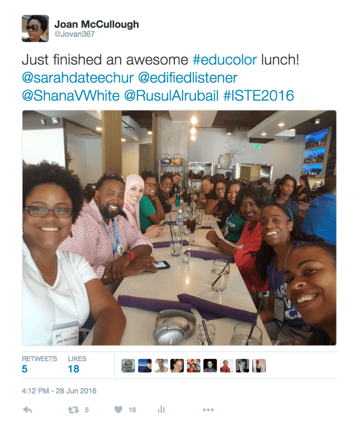 I just sat down at the Blogger's cafe´at ISTE 2016 amongst some common Twitter acquaintances known as the #Educolor movement. Their mission is to close the diversity gap in Educational Technology by raising awareness across the country. — Joan McCullough (@Jovan367) June 28, 2016 It's funny. I've been thinking about the diversity gap since I've been in Denver … Continue reading Get Out of Your Own Way: Closing the Diversity Gap in EdTech